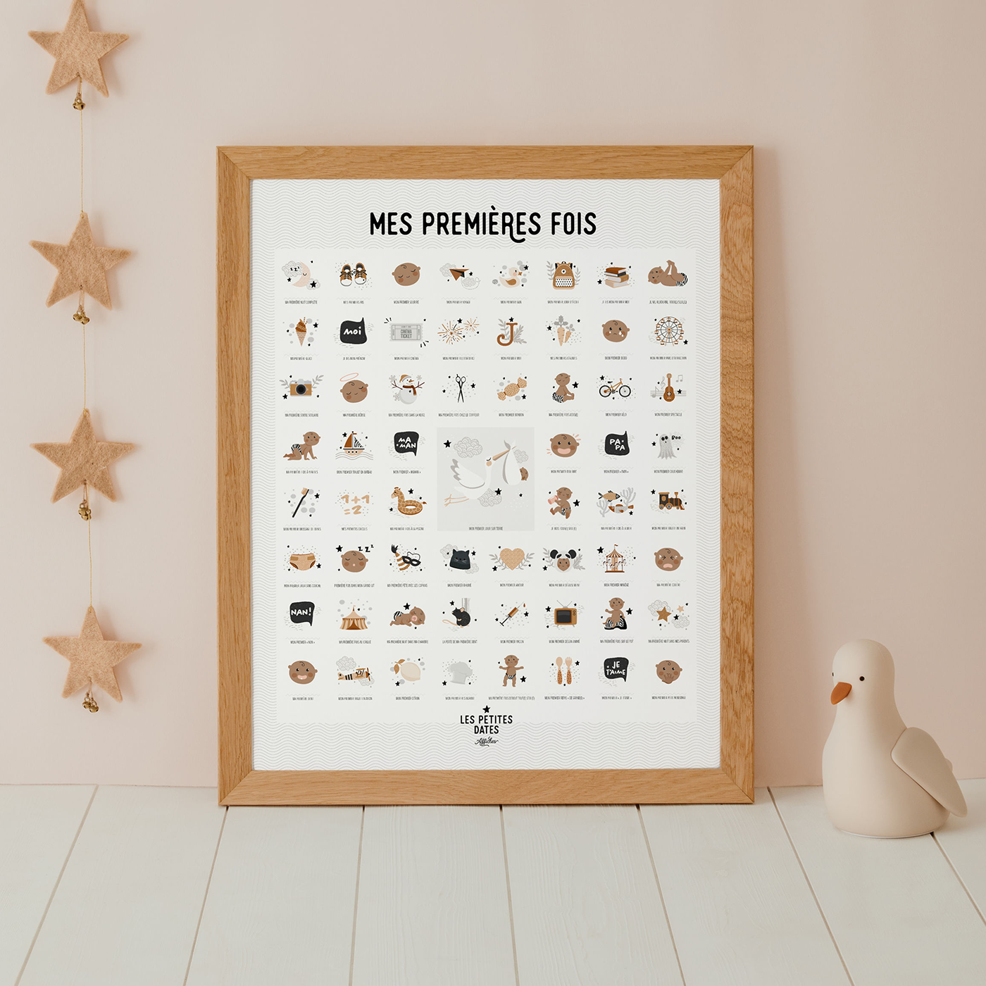 Entre le "premier jour sur terre" et "mon premier trajet en avion"... L’affiche comprend 61 premières fois pour accompagner la vie d’un enfant de 0 à 7 ans ou plus ! Il y les premières fois qu’on n’oublie pas comme les premiers pas, le premier mot… et il y a toutes les autres ! Qui se rappelle de la date de son premier bobo, de son premier brossage de dent, de sa première bêtise… ?