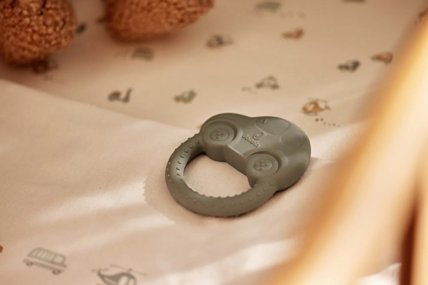 Cet adorable anneau de dentition en forme de voiture, sur le thème « On The Go », est parfait pour votre petit explorateur qui fait ses dents !