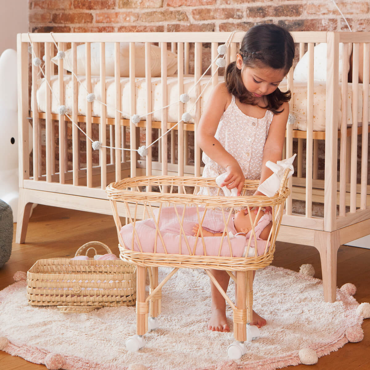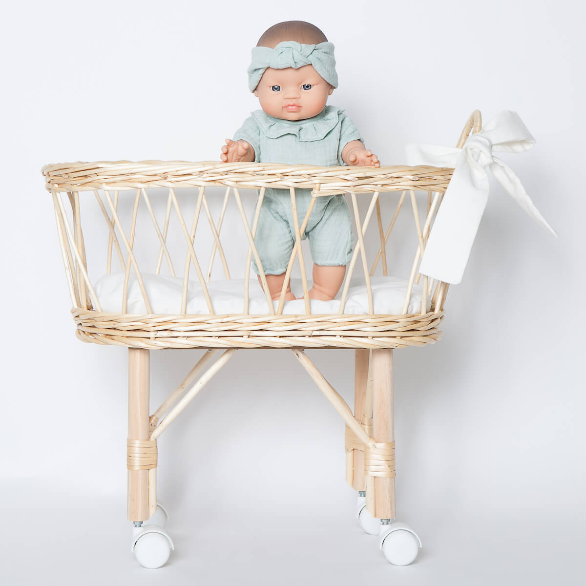 Le berceau poupée en osier Wookids est un berceau un brin rétro très craquant !