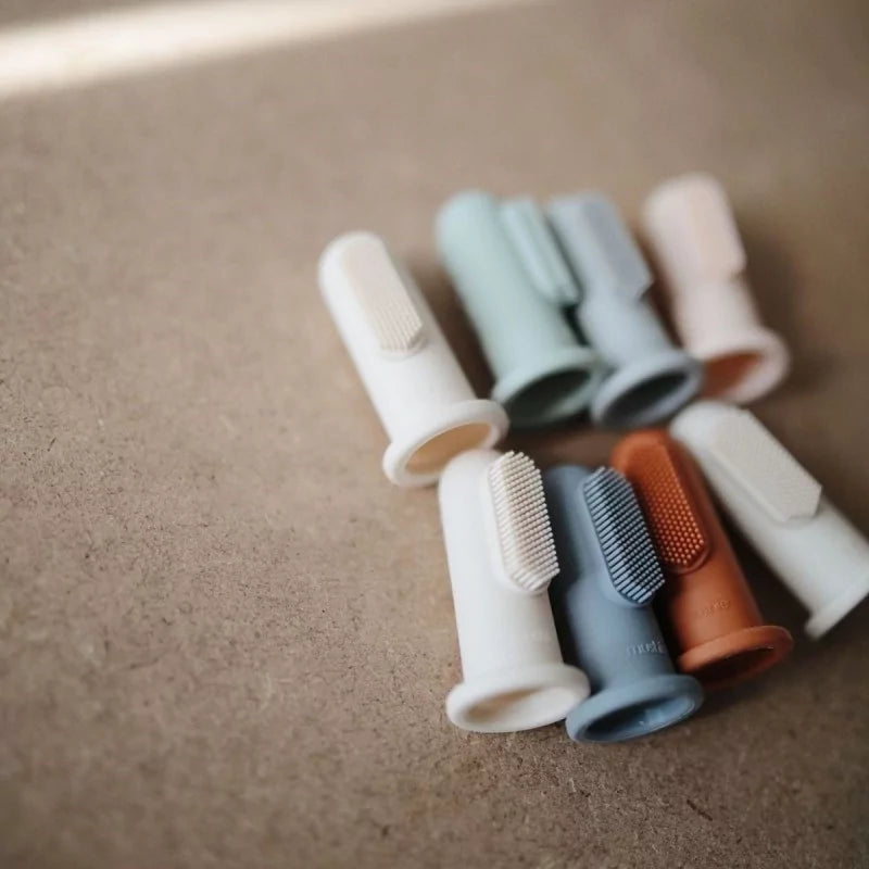 Éliminez les bactéries des gencives de votre bébé avec la brosse à dents à doigts de Mushie !