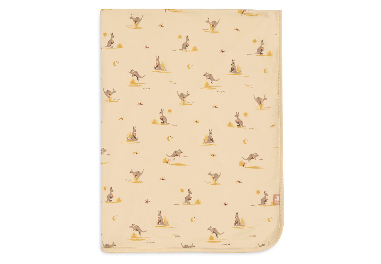 Cette douce couverture du thème Kangaroots est ornée d’un imprimé intégral de kangourous et de leurs petits sur un fond couleur Vanille.