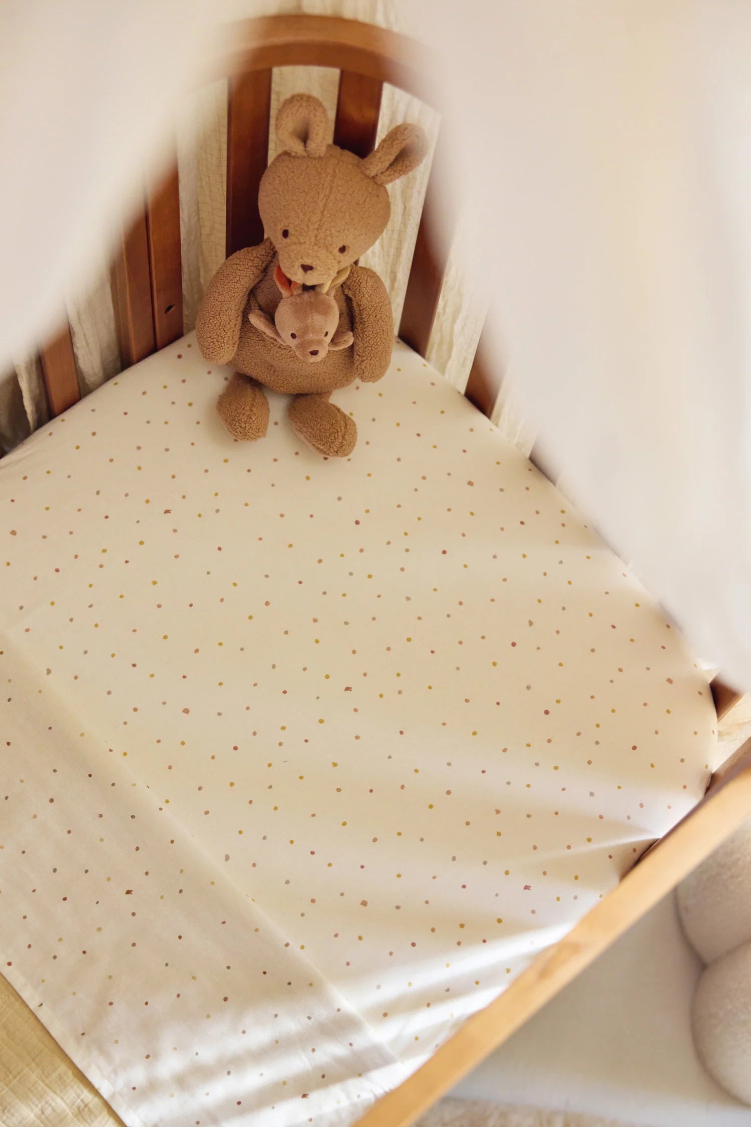 Ce drap Kangaroots est imprimé avec le motif Dusty Dot.