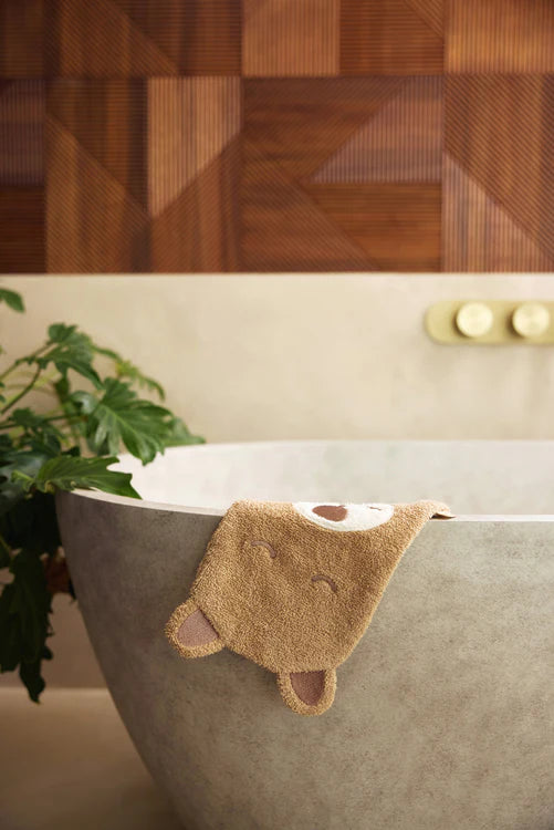 De plus, le gant de toilette est doté d'adorables petites oreilles sur le dessus et d'une boucle pratique pour l'accrocher. Le gant de toilette en tissu éponge peut être utilisé quotidiennement pour laver votre mini, mais il est également idéal à emporter lorsque vous sortez ensemble.