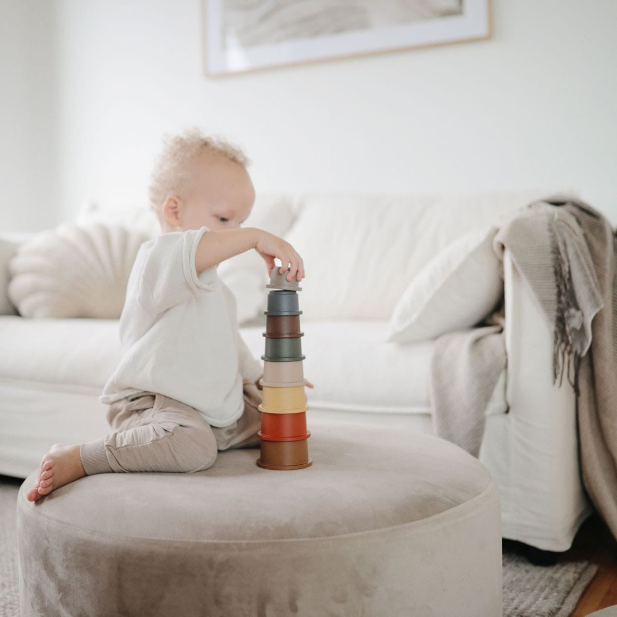 - Le jouet à empiler contribue au développement du corps et du cerveau à partir de six mois environ.