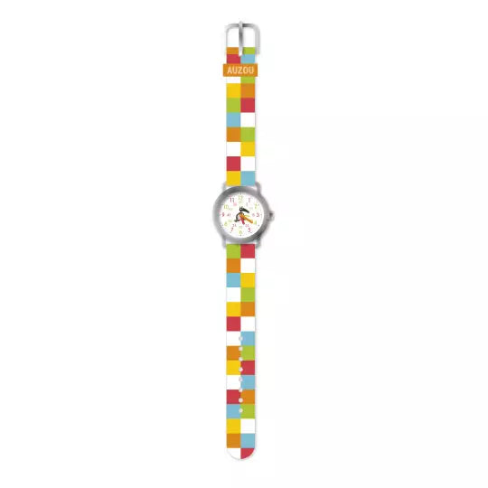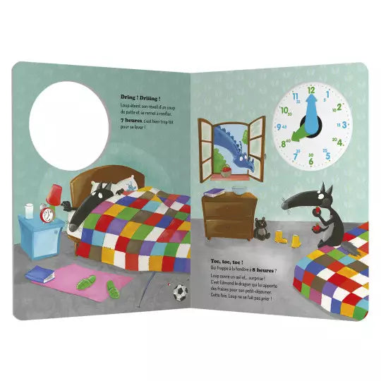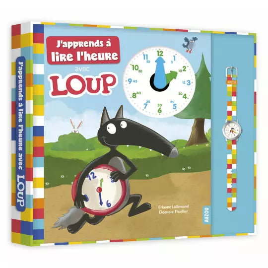 Vous retrouverez le livre avec une histoire originale et une horloge intégrée et une très belle montre, aux couleurs de Loup !