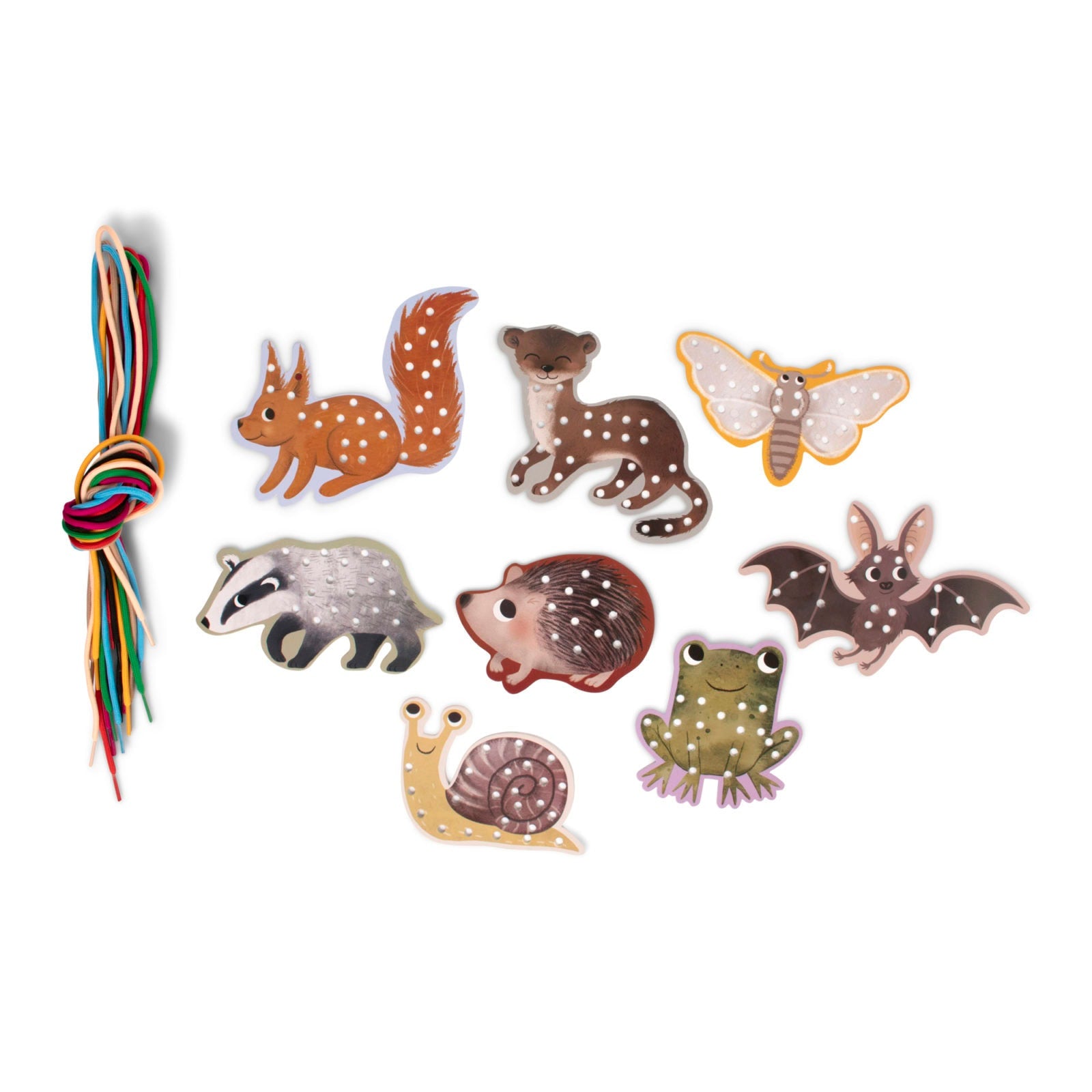 Ici, des ficelles colorées sont tissées à travers des trous pré-perforés dans les huit pochoirs d’animaux merveilleusement illustrés à la main en utilisant uniquement les doigts. Cela vous permet de créer de beaux motifs tout en améliorant sans effort vos compétences.