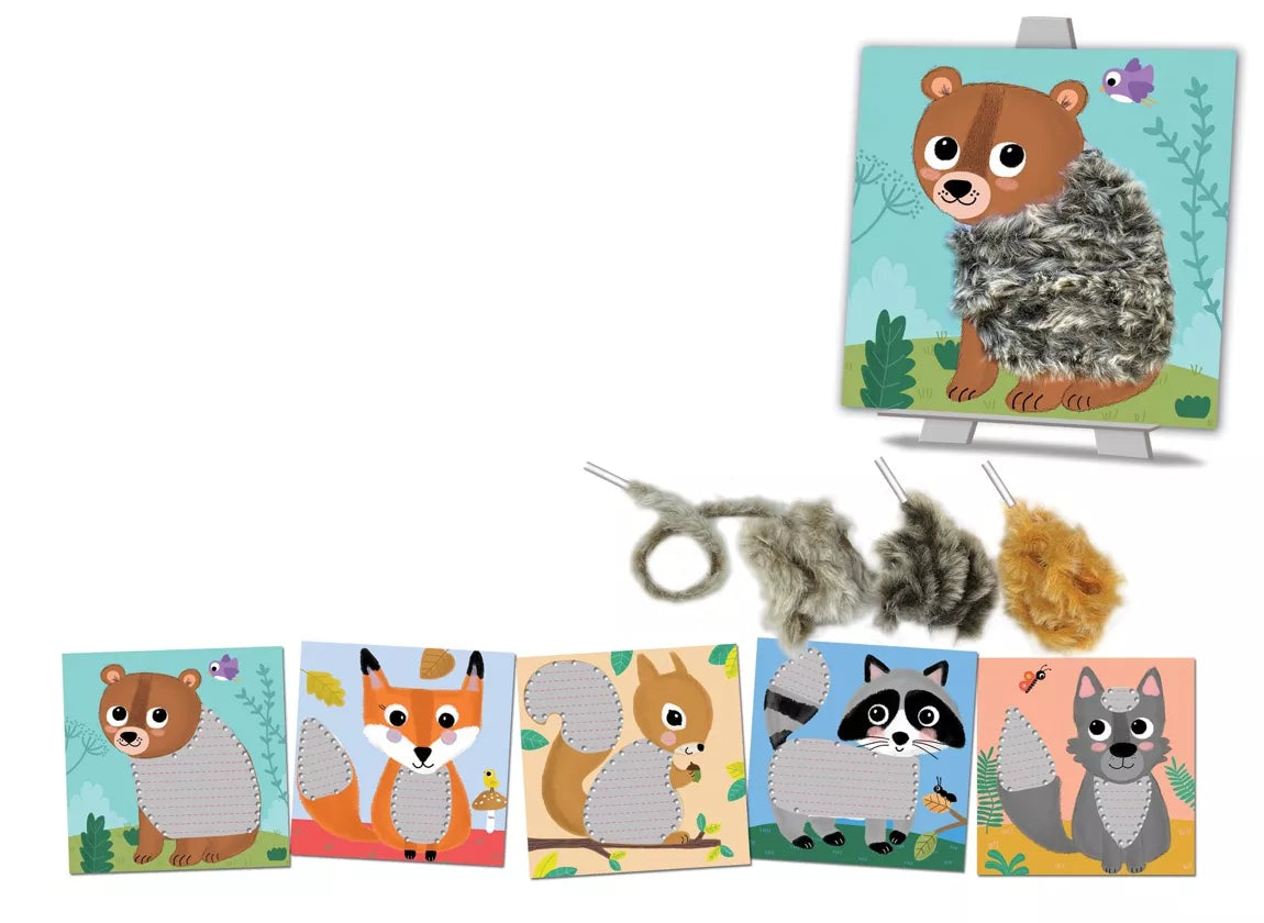 Grâce aux cartes à lacer et à la jolie laine les enfants créeront des douces fourrures d'animaux.