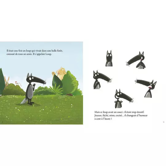 Joyeux, triste, excité, jaloux Loup change d'humeur à cent à l'heure. Avec lui, ses amis finissent par avoir le tournis !