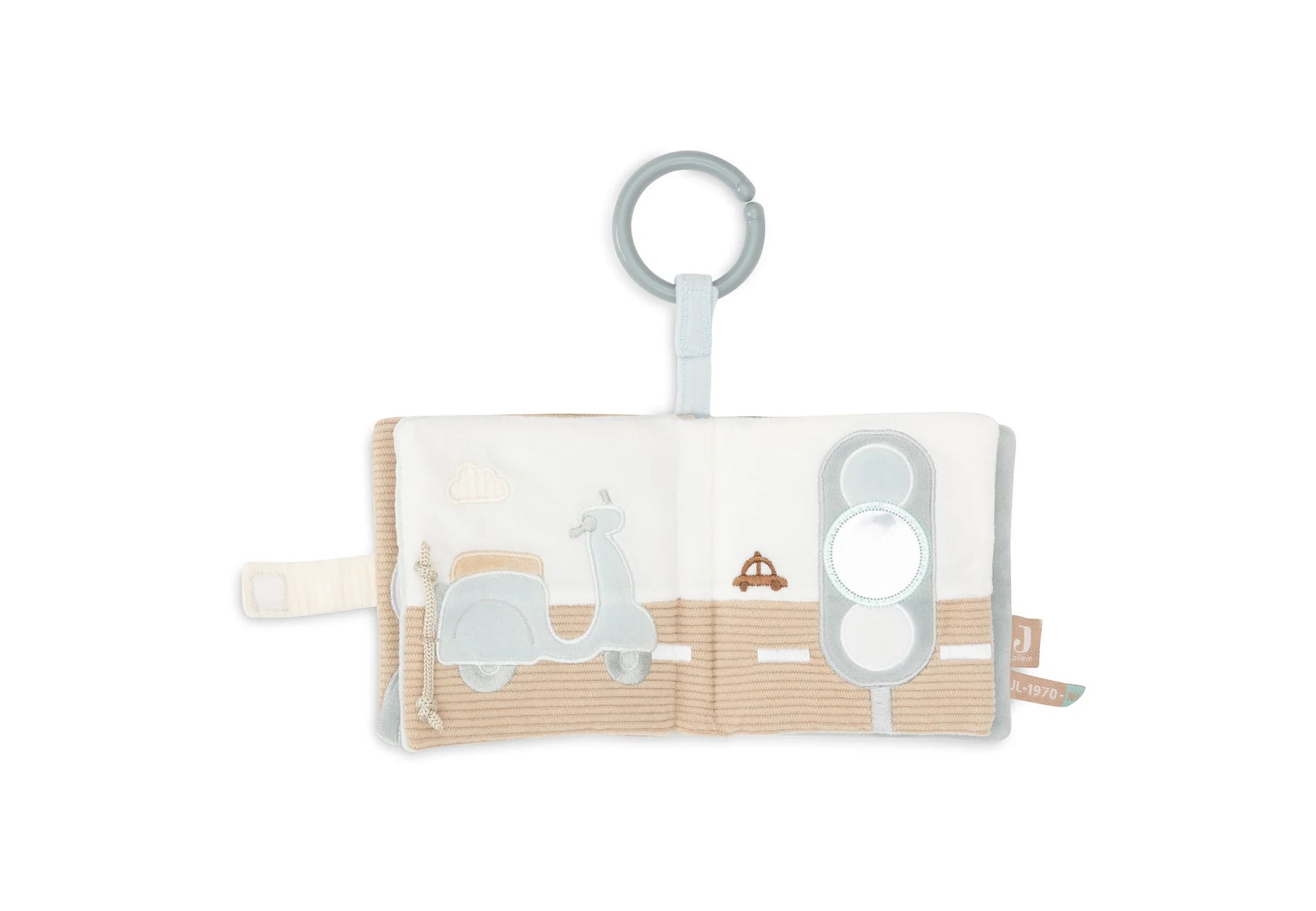 Explorez le monde avec ce livre d'activités unique sur le thème "On The Go" ! Avec ses quatre pages de tissu côtelé super doux en Sea Green et Cloud Blue, ce livret est parfait pour les petites mains curieuses.