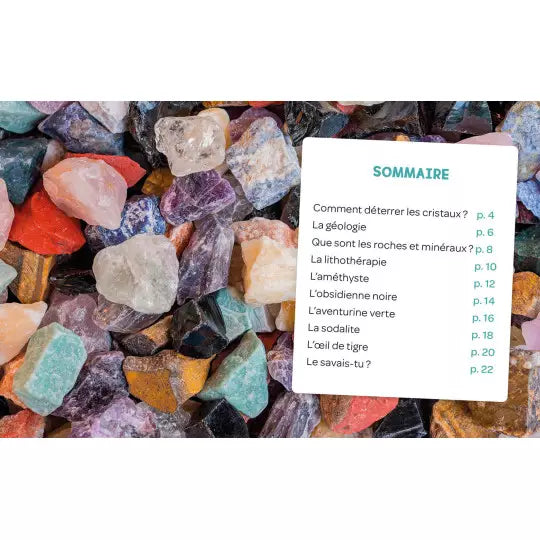 Le coffret est constitué d’un bloc à casser, d’ustensiles, de 10 cristaux de 5 types différents et d’un livret contenant plein d’informations passionnantes.