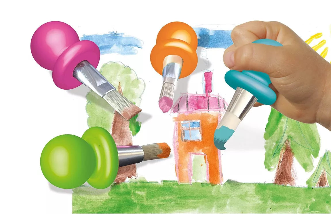 Il contient 4 pinceaux avec des poignées ergonomiques qui permettront aux jeunes artistes de donner libre cours à leur imagination. Pensés dans un soucis de sécurité, ils sauront s'adapter à toutes les petites mains.