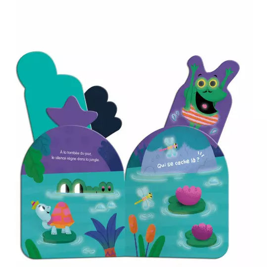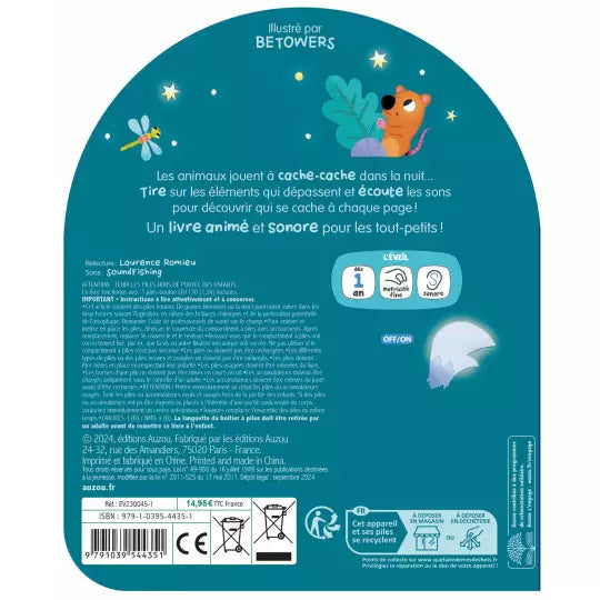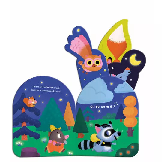 Les animaux jouent à cache-cache dans la nuit Tire sur les éléments qui dépassent et écoute les sons pour découvrir qui se cache à chaque page.