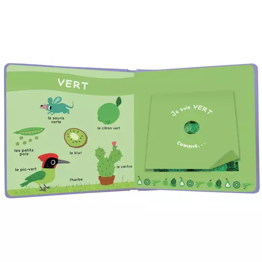 Une couleur, un imagier et une odeur par double-page sur le thème du jardin.