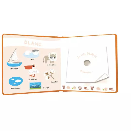 Chaque page de gauche présente une couleur grâce à de jolies illustrations simples et enfantines, mais que se cache-t-il derrière le rabat ?
