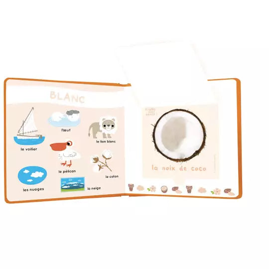 En frottant son doigt, l'enfant y découvrira une odeur du monde de la couleur de la page.
