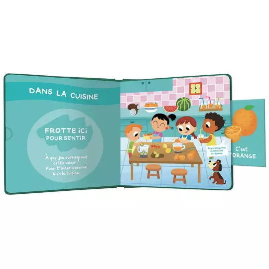 Une odeur à reconnaître cachée dans une grande illustration pour donner un coup de main à l'enfant.