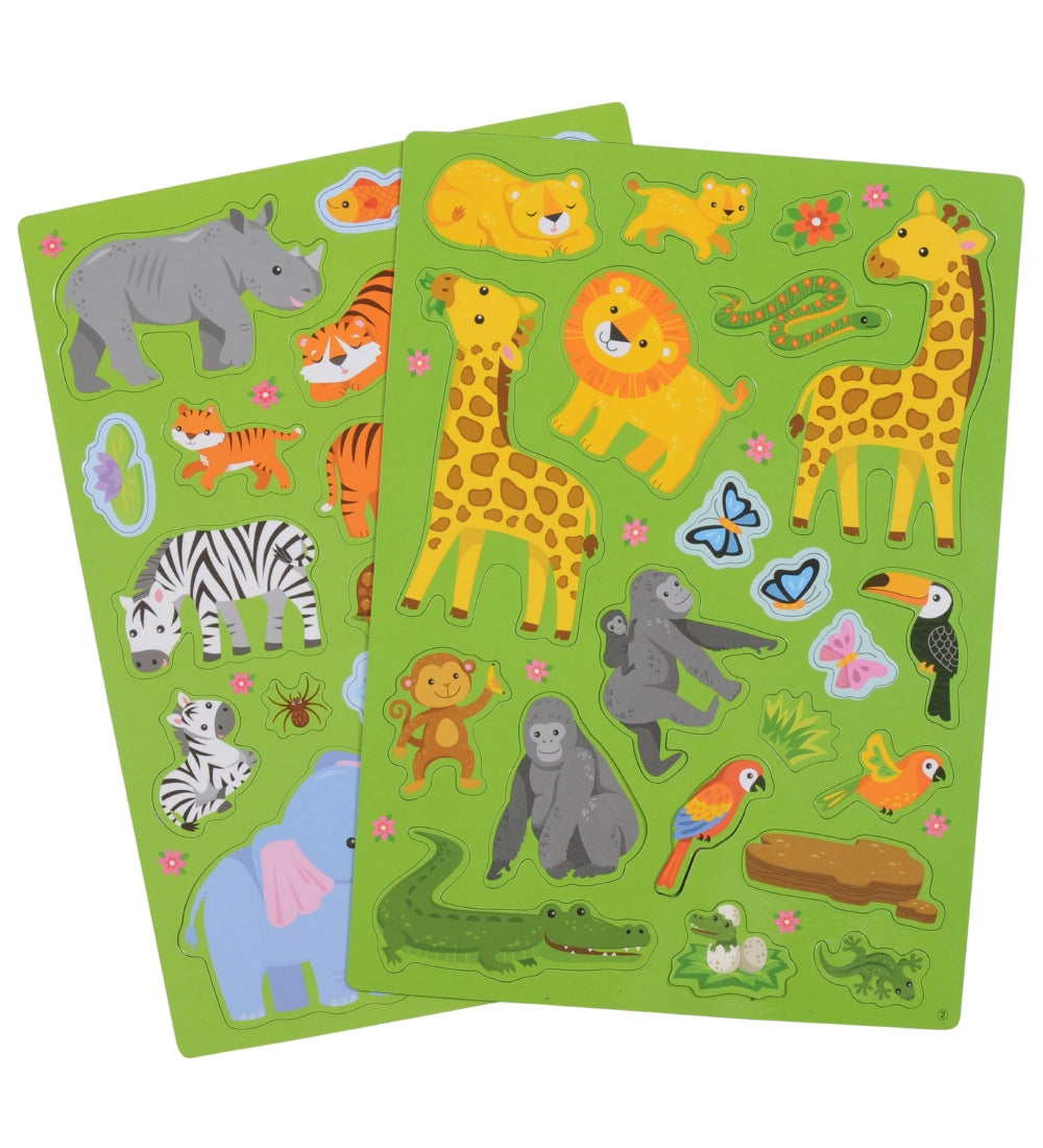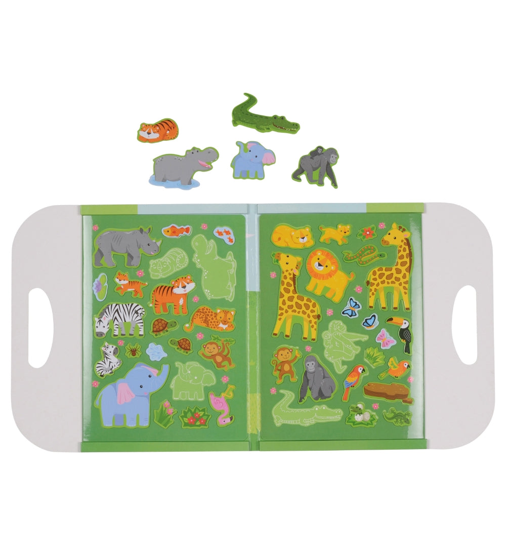 Le Tiger Tribe se compose d'un tableau magnet et de deux feuilles avec des figurine jouet magnétiques différentes, qui correspondent toutes au thème du livre.