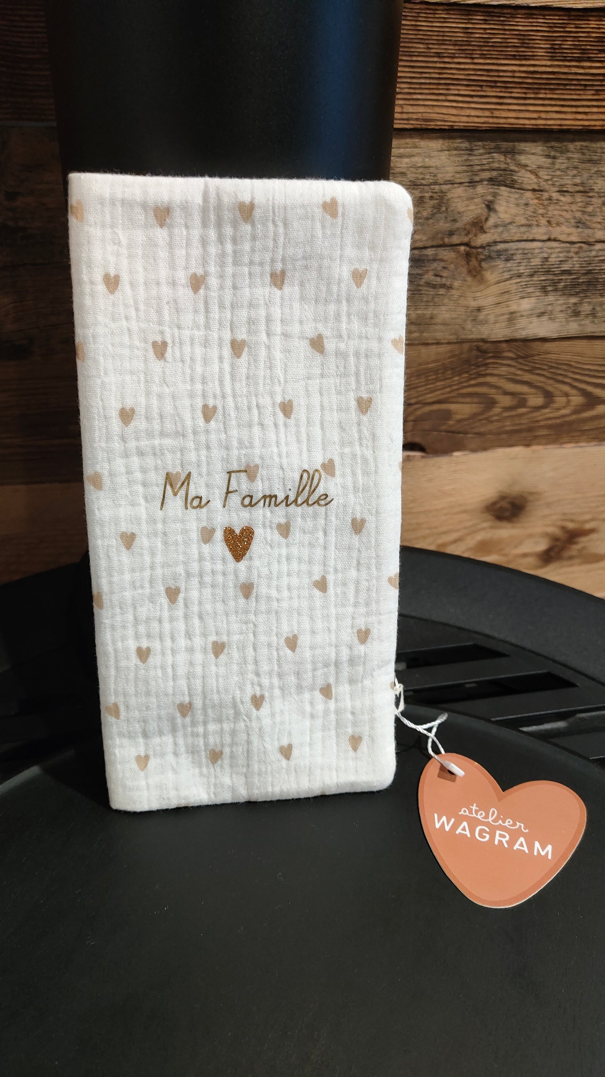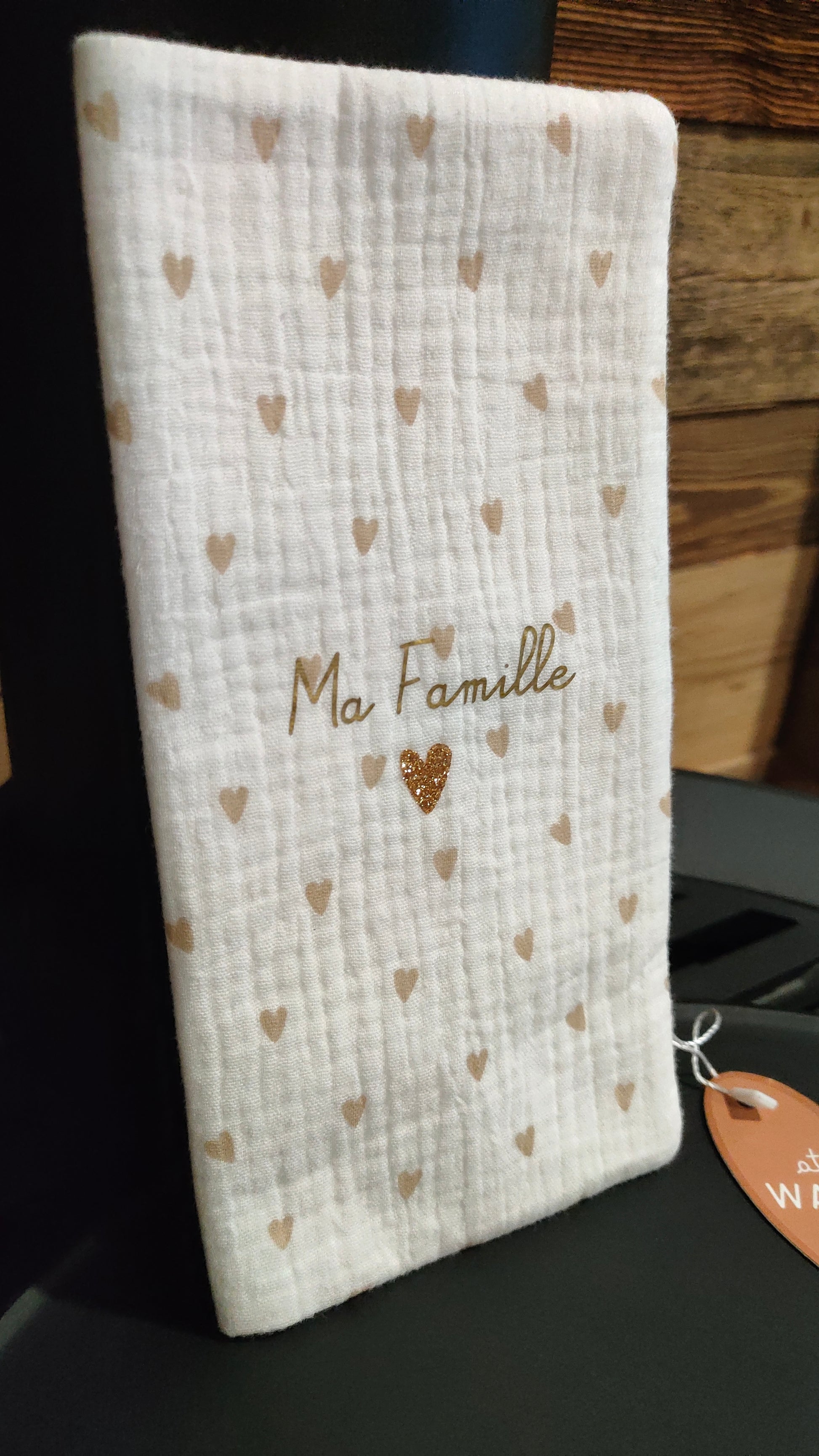 Protège livret de famille gaze motif coeurs MA FAMILLE