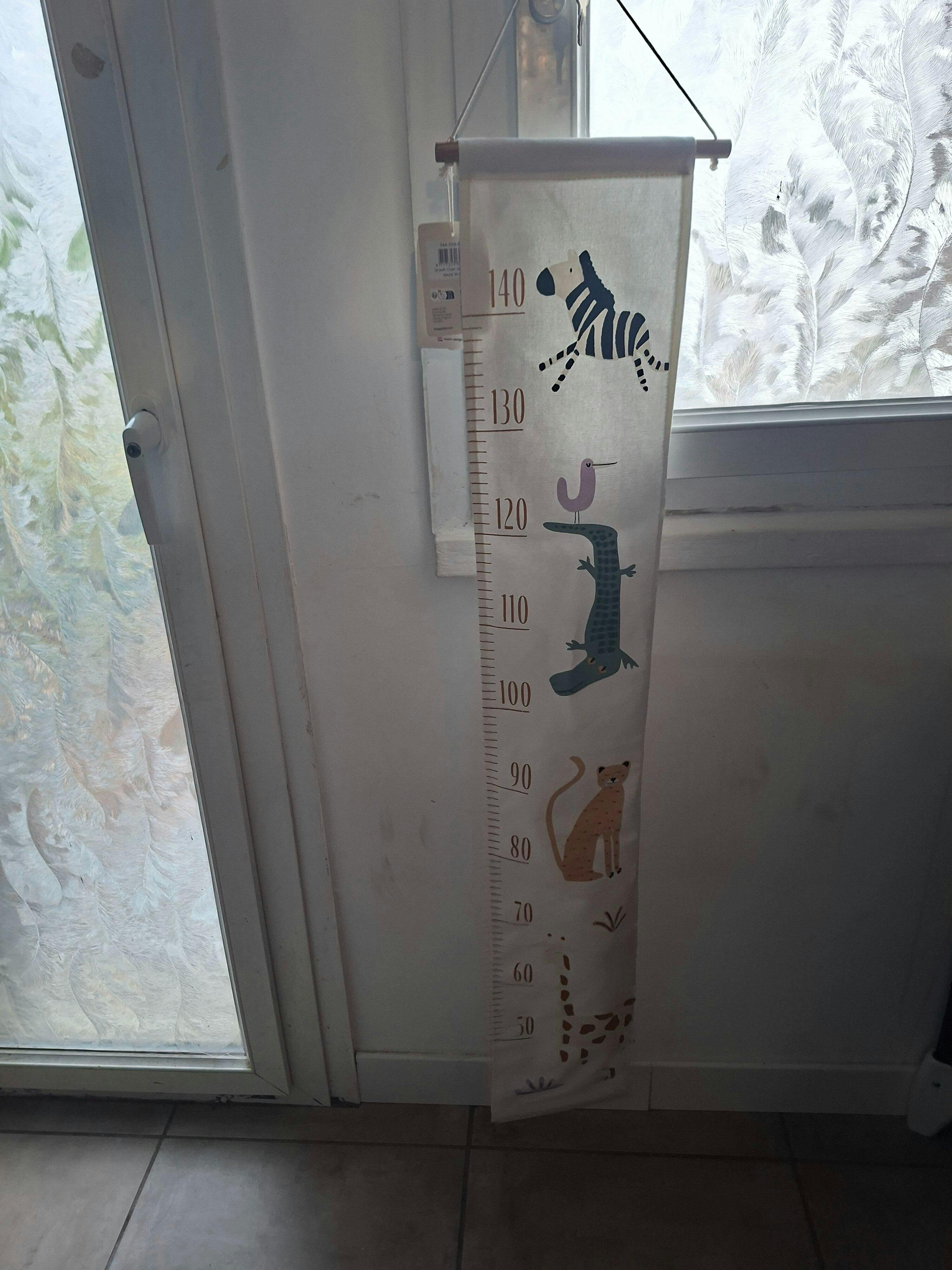 De couleur Oatmeal et décorée de différents animaux de la jungle, vous pouvez mesurer jusqu'à 140cm la vitesse à laquelle votre enfant grandit.